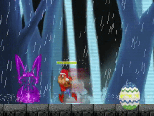 Uma vez adicionei um ovinho da Páscoa, que podem ver no vídeo, e que me dava invencibilidade. Desta vez decidi colocar lá um coelhinho da Páscoa para me dar uma vida extra: